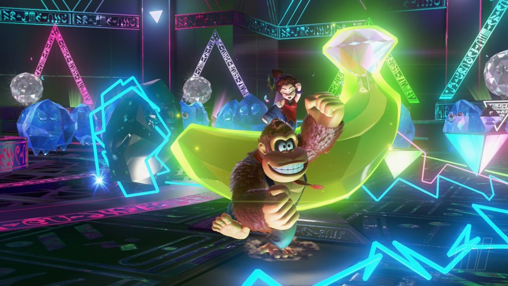 Difficile invece parlare male della colonna sonora di un titolo Nintendo. In Bananza la musica, più precisamente il canto di Pauline, è la base delle skill più forti di DK e ciò che gli permette di cambiare forma, trasformandosi in un gorilla ancora più grosso o in altri animali, ognuno accompagnato dal suo motivetto. I motivetti tutti molto orecchiabili possono però tendere alla ripetitività considerando quante volte dovremmo ricorrere alle varie forme di DK.
