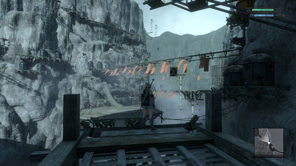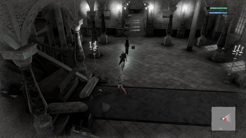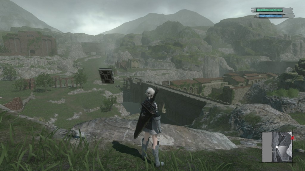 Il gioco inizia in una Tokyo post apocalittica dove il protagonista, un ragazzino senza nome (sarà il giocatore a stabilirlo) dalla chioma argentata visibilmente debole e affannato, ha come unico scopo quello di prendersi cura della sorella minore Yonah. A fornite preoccupazione al giovane sono le Shade (ho giocato con testo e voci in lingua inglese), delle ombre nere con particolari tendenti al giallo/oro di diversa dimensione e forma, le quali sono anche indice della loro capacità combattiva. Quste Shade rappresentano il nemico principale in NieR. In un primo momento il protagonista, maneggiando un tubo di metallo, riesce a respingere la minaccia ma quando si presentano i rinforzi nemici capisce che non può contare solamente sulle sue forze. Si affida quindi a un libro magico, in grado di fluttuare e lanciare sfere di energia oltre che a fornire al suo utilizzatore diversi poteri. Così buffato il ragazzo esce vincitore dallo scontro contro le ondate di Shade e si precipita a controllare lo stato di Yonah. Sembra stare bene ma anche lei, ignorando le raccomandazioni del fratello, è ricorsa ai servigi di un libro magico al fine di rendersi utile e non sentirsi solo un peso.