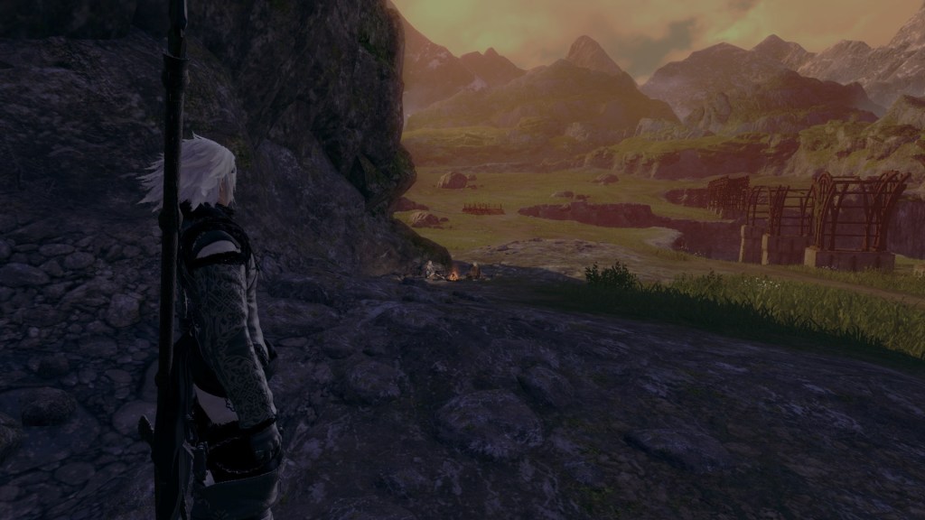 Nel gioco originale il protagonista si chiama Nier, lo chiamerò anch’io così all’interno di questa recensione per comodità. Il pensiero fisso di Nier è quello di aiutare la sorella a limitare le sue sofferenze e guarirla. Yonah è affetta da una malattia fatale, la Black Scrawl. Essa manifesta nei colpiti degli strani simboli arcani neri, oltre a ondate di dolore intenso e uno stato febbrile. Mentre Nier si prodiga nel vestire i panni del fratello modello, aiuta pure gli abitanti del suo villaggio in vari compiti, sotto forma di sub quest. Sono le classiche quest “riempitive” da Gdr: porta oggetto X a persona Y, farma tot risorse, cerca le uova di gallina nascoste. Lo dico subito, queste missioni sono poco ispirate e pesanti da completare. A gestire il villaggio sono le due sorelle gemelle dai capelli rossi Devola e Popola, le quali spezzano il ritmo tranquillo e semplice del villaggio affidando a Nier le missioni principali e più stimolanti come sconfiggere delle Shades nei pressi dei cancelli perimetrali.