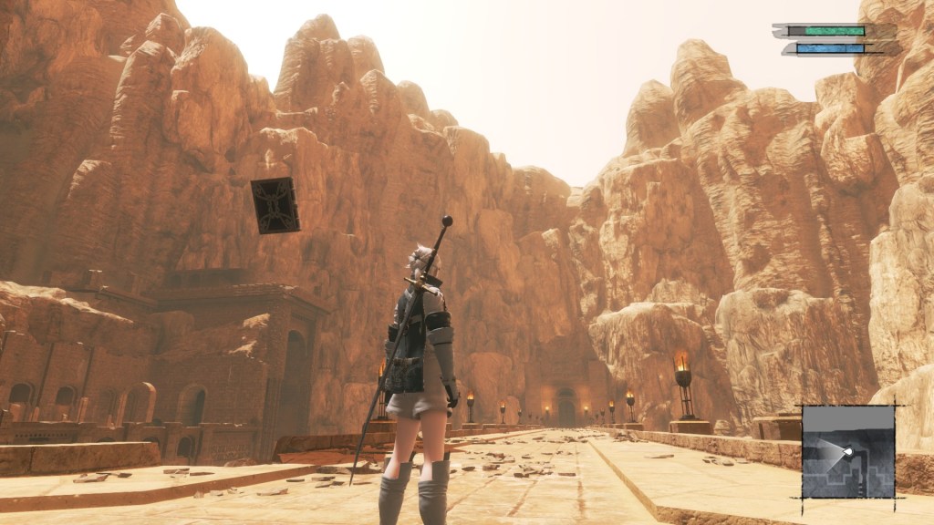 La storia prende una svolta quando Yonah sparisce dalla propria dimora. Verrà ritrovata senza sensi dal fratello in un antico tempio. La ragazza si era messa alla ricerca di un fiore leggendario, il Lunar Tear, che avrebbe voluto trovare dopo averne sentito parlare dal fratello che le raccontava di come la sua vendita avrebbe potuto portare molto denaro nelle loro tasche, denaro che avrebbe aiutato con l’acquisto di medicinali per alleviare i dolori causati dalla Black Scrawl. Oltre alla sorella e a un mucchio di Shades, nel tempio Nier rinviene anche un libro molto simile a quello visto nello spezzone iniziale a Tokyo. Anche questo tomo fornisce al suo utilizzatore dei poteri magici ed è in grado di fluttuare, inoltre è in grado di parlare ed è dotato di una sua coscienza. Si presenta come il leggendario “Grimoire Weiss“. Grazie alla collaborazione con il grimorio, Nier riesce a portare in salvo la sorella. La direzione della storia rimarrà quella di Nier alla ricerca di una cura ma non continuo oltre per evitare spoiler.