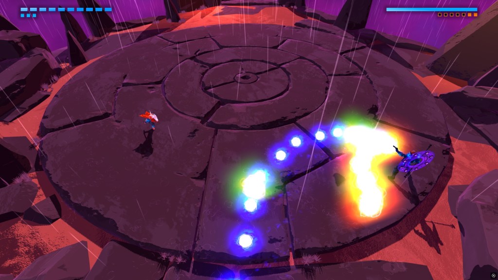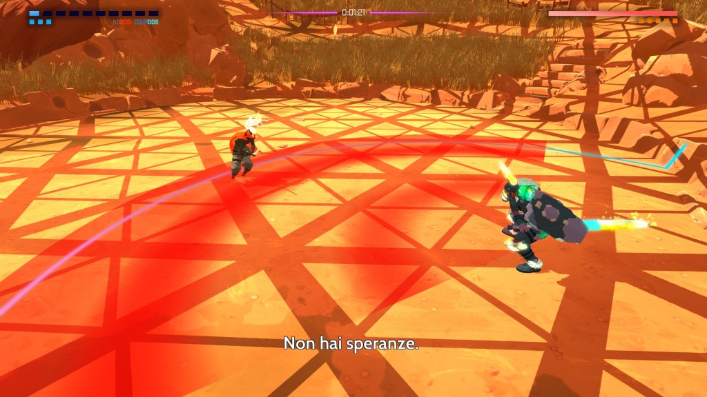 Furi è un titolo d’azione che rimane impresso e che si discosta da altri giochi del genere. L’azione è concentrata nelle boss fight le quali rappresentano praticamente tutta l’esperienza in sé. Infatti in Furi il giocatore dovrà affrontare queste sfide una dietro l’altra intermezzate soltanto da scene uscite direttamente da dei walking simulator dove viene posto l’accento sulla narrativa.