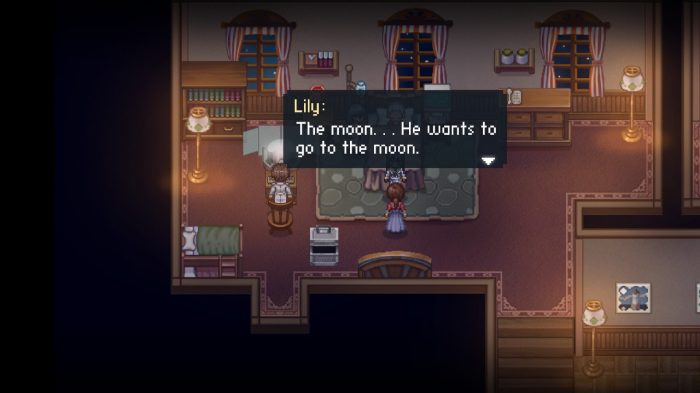 To the Moon è un’avventura sviluppata in Rpg Maker incentrata sulla storia. Non è possibile considerarlo un gioco di ruolo vero e proprio perché mancano gli elementi tipici del genere come le fasi di combattimento, gestione del party e compagnia. Si esplora il mondo circostante, si ottiene qualche oggetto e si prosegue, tutto per seguire unicamente le vicende narrative.